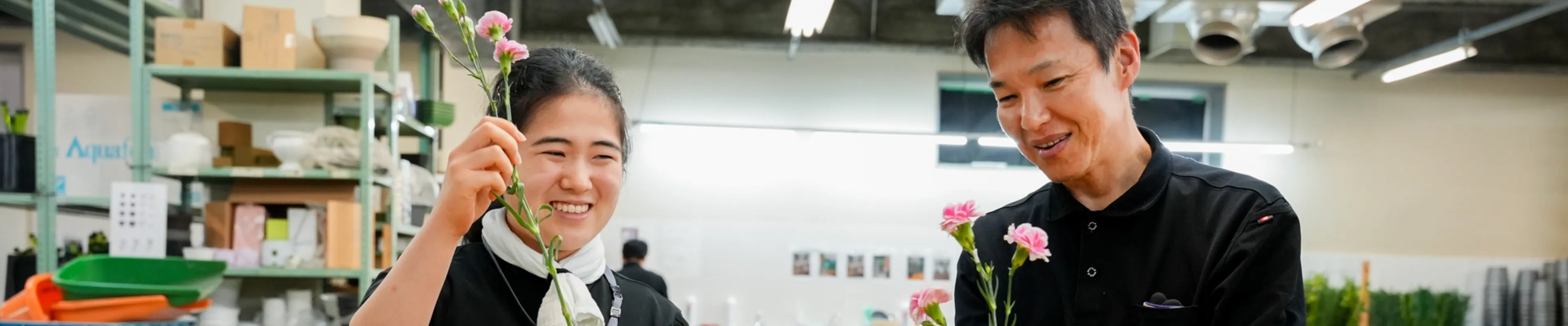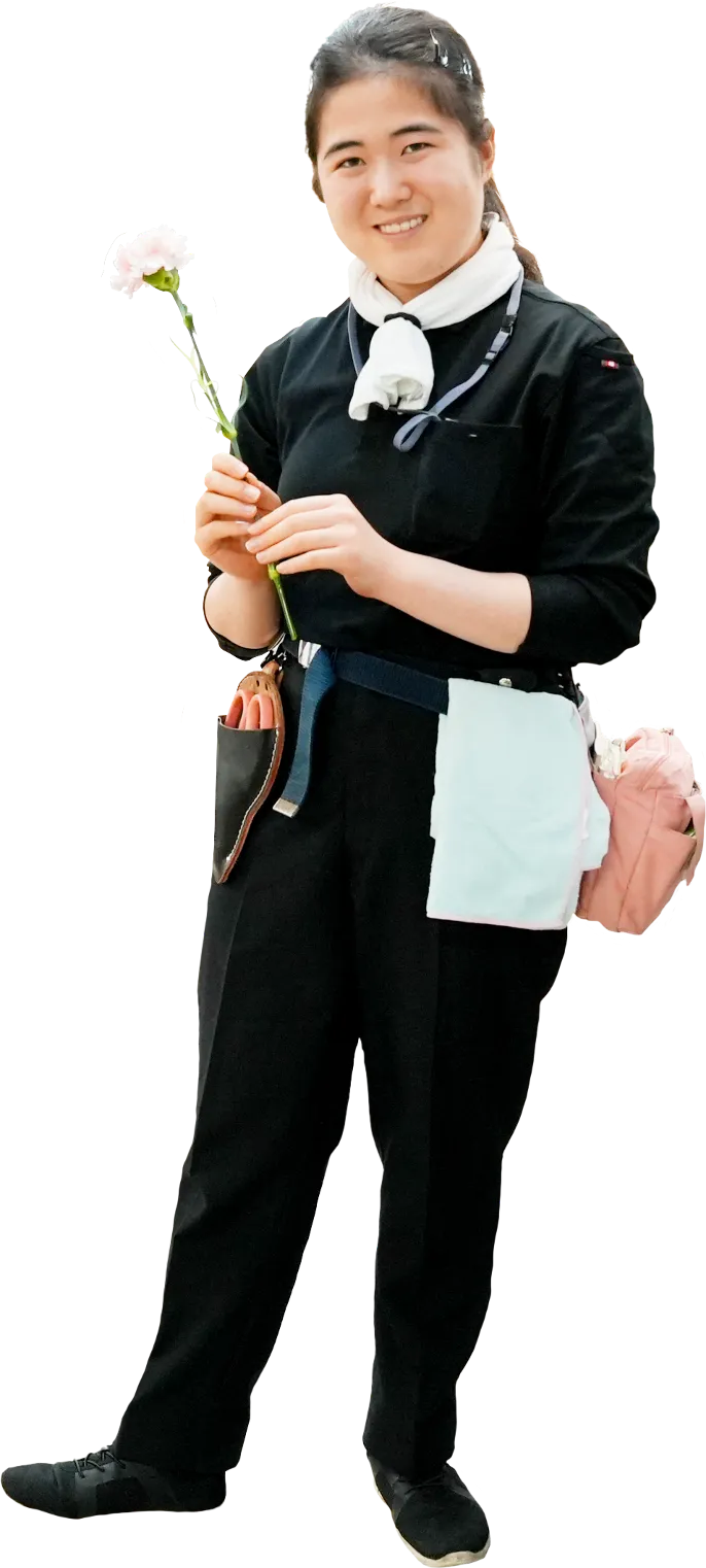 それと、彼女はお花を触っている時はいつも笑顔なのが良いですね。これからも仕事を楽しみながら、周りを明るくしてくださいね。