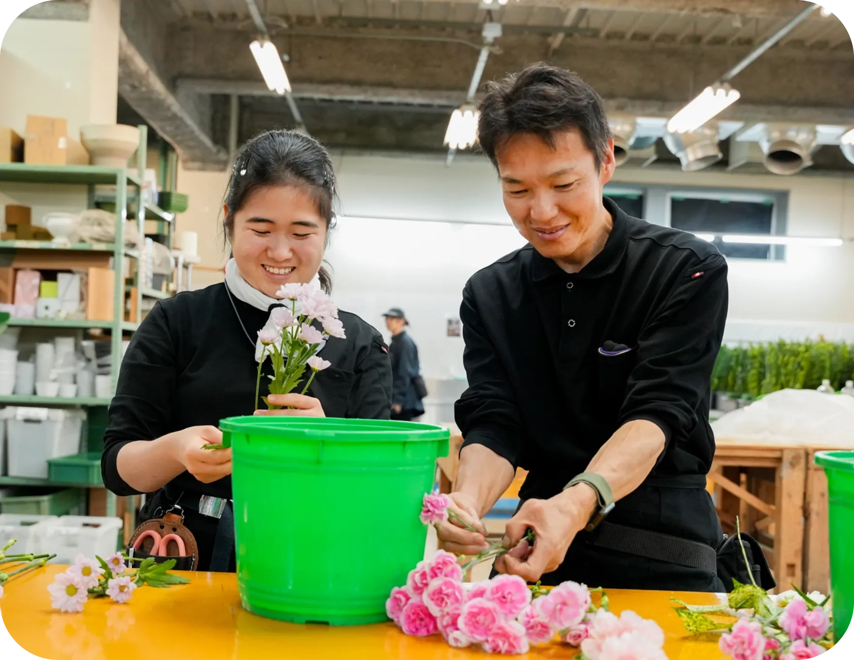 それと、彼女はお花を触っている時はいつも笑顔なのが良いですね。これからも仕事を楽しみながら、周りを明るくしてくださいね。